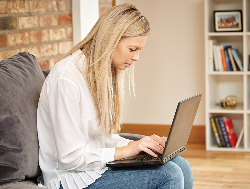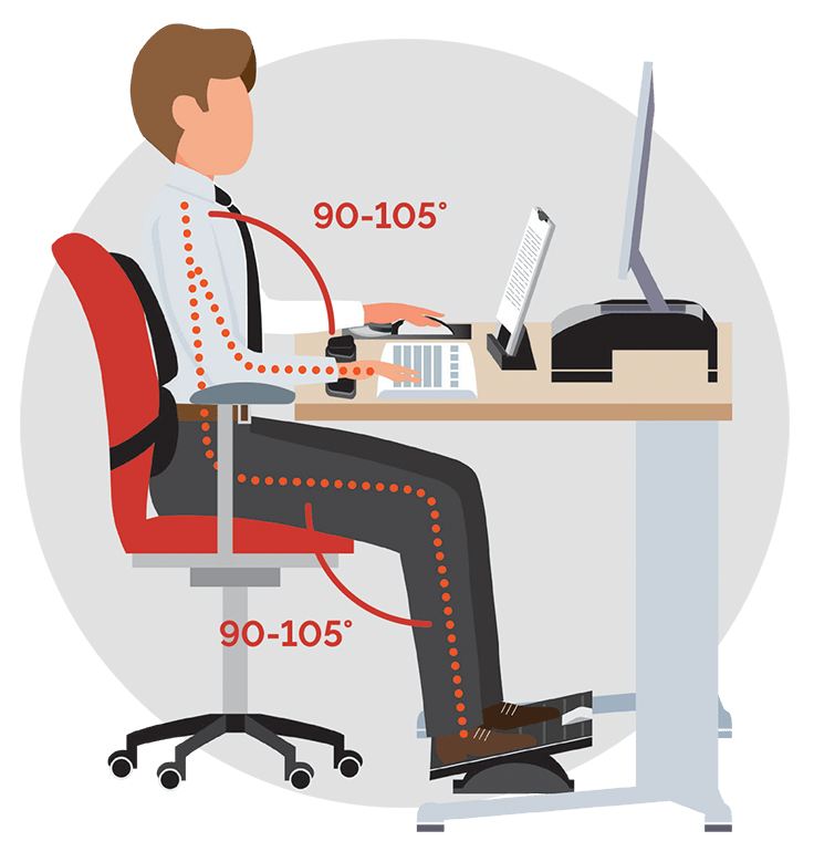 Od czego możemy zacząć? Proponuję od miejsca, w którym siedzimy. Gdy pracujemy dłużej niż 2 godziny na laptopie, w większości siadamy nie w fotelu czy na kanapie, a przy jakimkolwiek stole, czy biurku i na krześle lub taborecie. Tego drugiego absolutnie nie polecamy, bo długie siedzenie bez podparcia pleców jest bardzo obciążające dla kręgosłupa. Sugerujemy wybór krzesła z oparciem. Ideałem oczywiście byłoby krzesło biurowe, ale jak się na ma tego, co jest potrzebne – wykorzystajmy to, co jest dla nas lepsze i dostępne. Krzesła przeznaczone do spożywania posiłków nie są przeznaczone do siedzenia przez 8 godzin przy komputerze, ale możemy poprawić nasz komfort pracy. Jak? Usiądźmy na krześle, oprzyjmy plecy o oparcie. Czy jesteśmy w stanie utrzymać wyprostowaną postawę przez dłuższy czas, czy po pewnym czasie zaczynamy „kulić się”? Jeżeli to drugie to powody mogą być dwa – pierwszy to za nisko umieszczony ekran monitora/laptopa na blacie stołu co powoduje, że nachylamy się w jego kierunku. Drugi to brak odpowiedniego wsparcia kręgosłupa w odcinku lędźwiowym. Siedząc przy komputerze/laptopie powinniśmy mieć zachowany kąt prosty lub lekko rozwarty w obrębie miednicy oraz pod kolanami. Stopy powinny swobodnie opierać się o podłogę. Ręce po położeniu na blacie stołu powinny także tworzyć kąt prosty lub lekko rozwarty między ramieniem a przedramieniem, dłonie płasko.