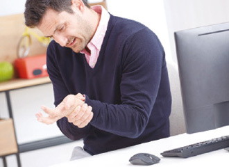 Długotrwałe pisanie na klawiaturze i używanie myszy bez odpowiedniego wsparcia może powodować napięcie nerwu pośrodkowego, co prowadzi do zespołu cieśni nadgarstka.