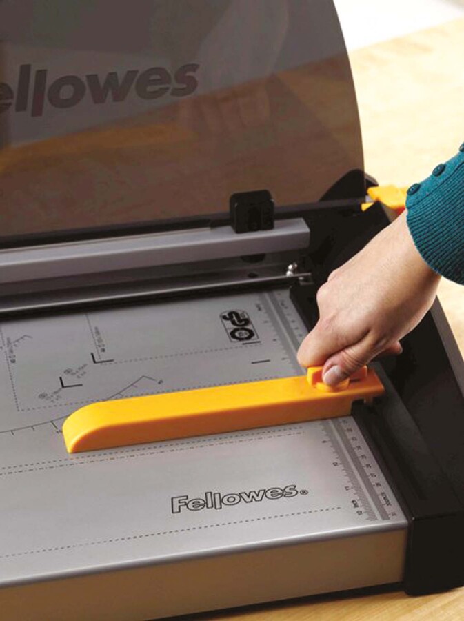 - Dokładne cięcie dużej ilości kartek. Automatyczny docisk papieru zapobiega przesuwaniu się dokumentu podczas cięcia.