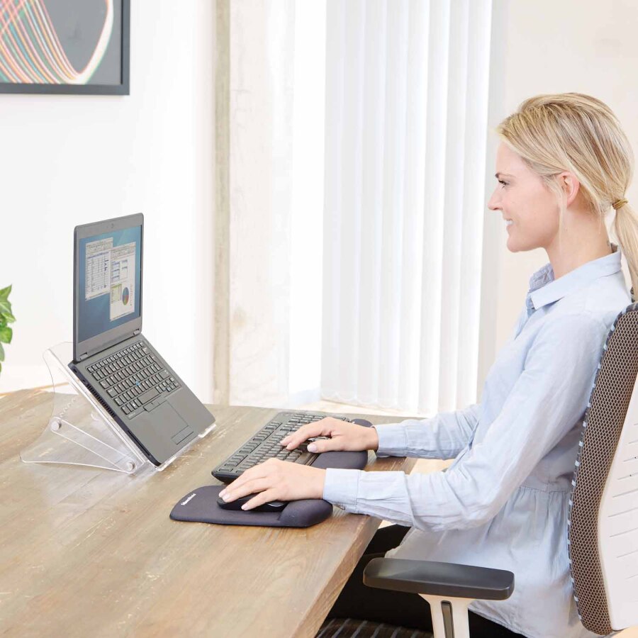 Podstawa pod laptop Clarity™ podnosi ekran laptopa łagodząc napięcie mięśni ramion i szyi