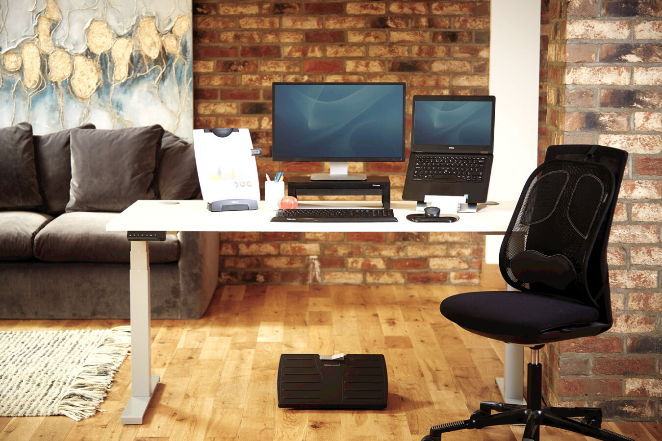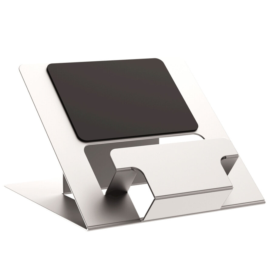 - Podnosi ekran laptopa na wysokość wzroku łagodząc napięcie mięśni ramion i szyi