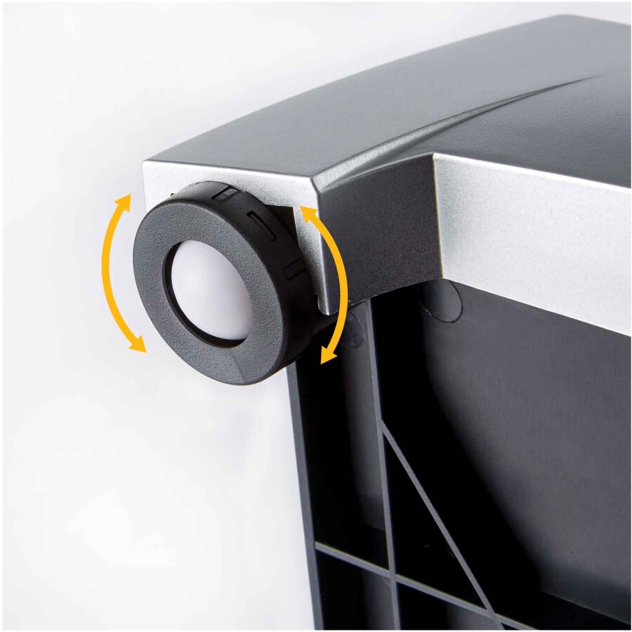 • Regulowany kąt nachylenia - 6 pozycji wysokości w zakresie 114 - 190 mm, nachylenie pod kątem 14 - 27,5°