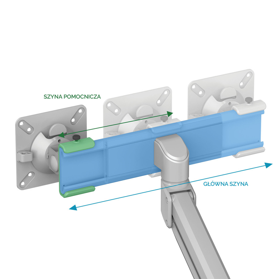 Ramiona - szyna pozwalająca na łatwe i precyzyjne dopasowanie położenia monitorów