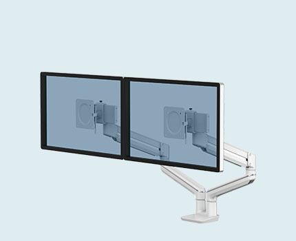 Kompaktowe i w pełni regulowane ramiona na 1 lub 2 monitory.