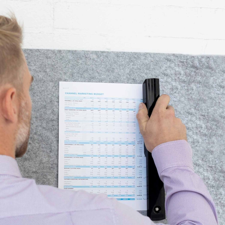 - Możliwość pełnego otwarcia zszywacza ułatwiająca przyczepienie dokumentów do tablic