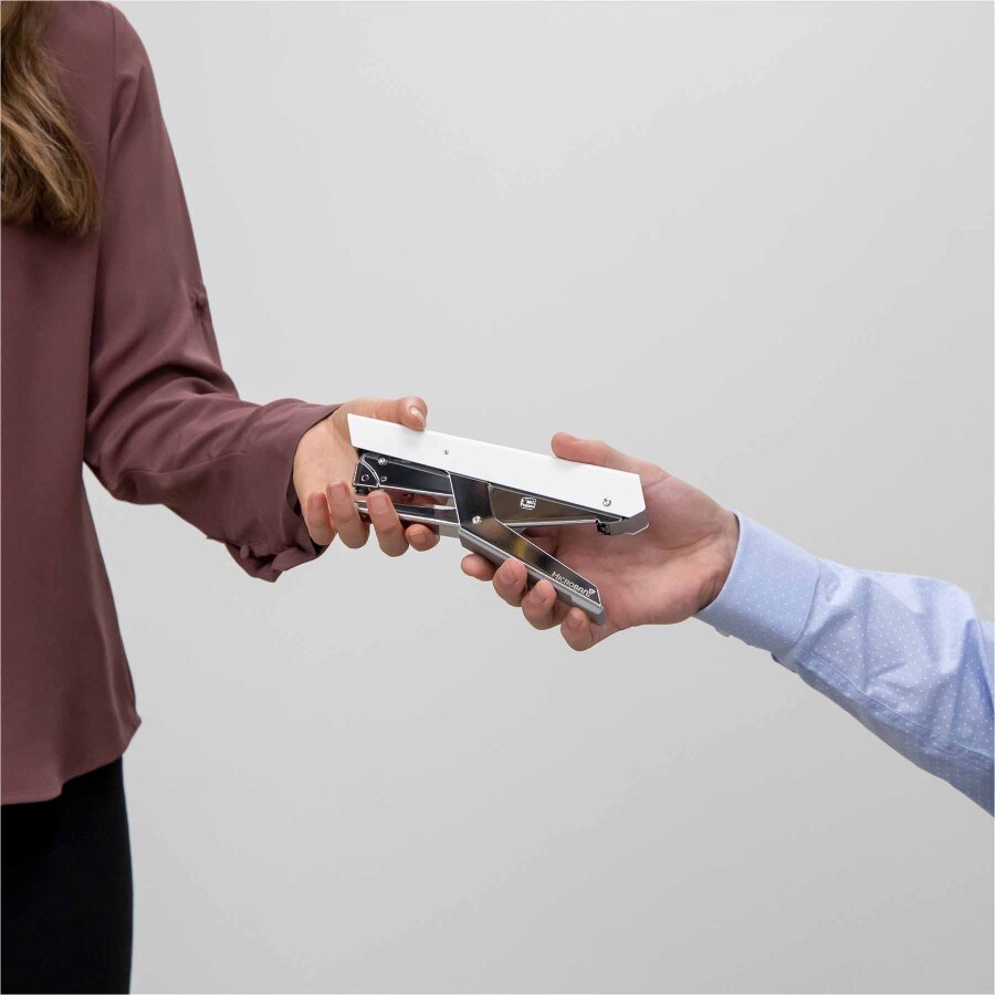 • Wytrzymałe, wysokiej jakości, metalowe rączki w układzie nożycowym zapewniają bezproblemowe zszywanie