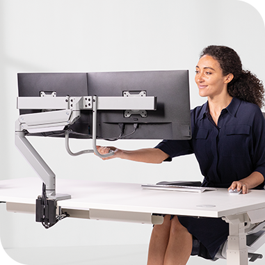 Opcja ramienia słupkowego umożliwia wybór wysokości statycznej dla uzyskania odpowiedniego komfortu pracy. A technologia sprężyn gazowych oferuje natychmiastową elastyczność i łatwą regulację wysokości, która doskonale nadaje się do współdzielenia ekranu, a także idealnie sprawdza się, gdy jedno biurko jest używane przez wielu użytkowników.